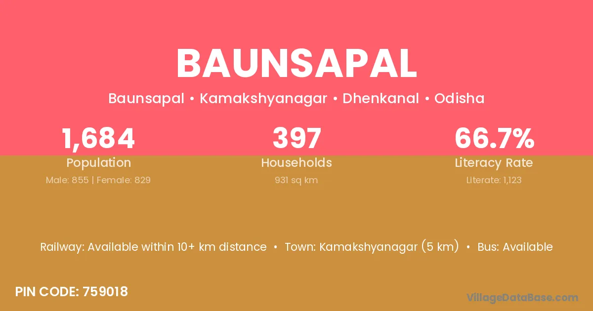 Jajapur (40 km) is the nearest town to Baunsapal village for major economic activities and is located approximately 40 km away.