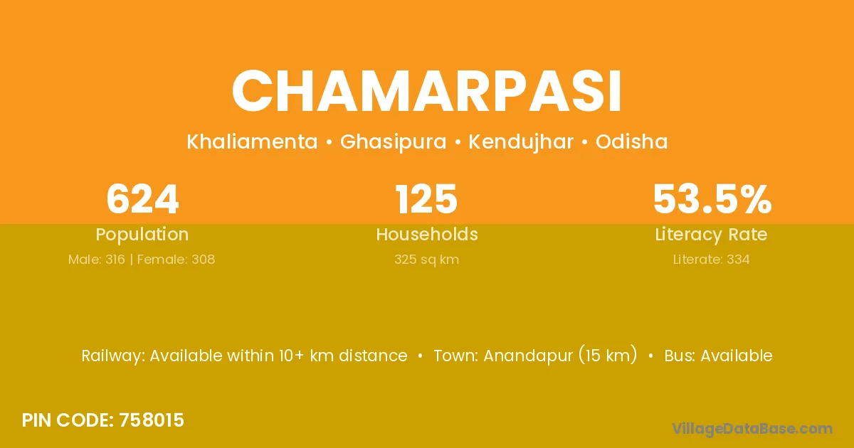 Anandapur (15 km) is the nearest town to Chamarpasi village for major economic activities and is located approximately 15 km away.