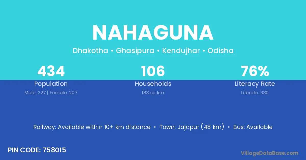 Jajapur (48 km) is the nearest town to Nahaguna village for major economic activities and is located approximately 48 km away.