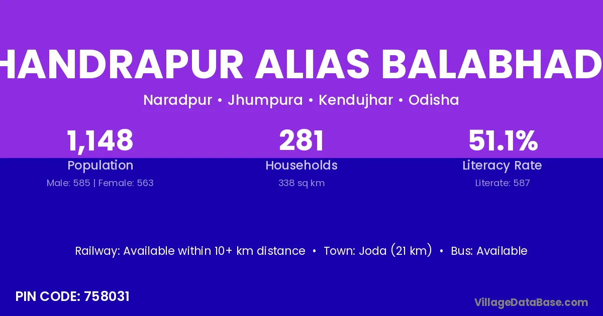 Ramchandrapur Alias Balabhadrapur village is located in the Jhumpura Tehsil of the Kendujhar district in Odisha .