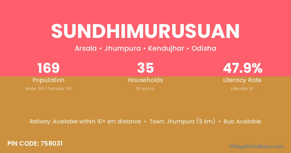 Jhumpura (5 km) is the nearest town to Sundhimurusuan village for major economic activities and is located approximately 5 km away.