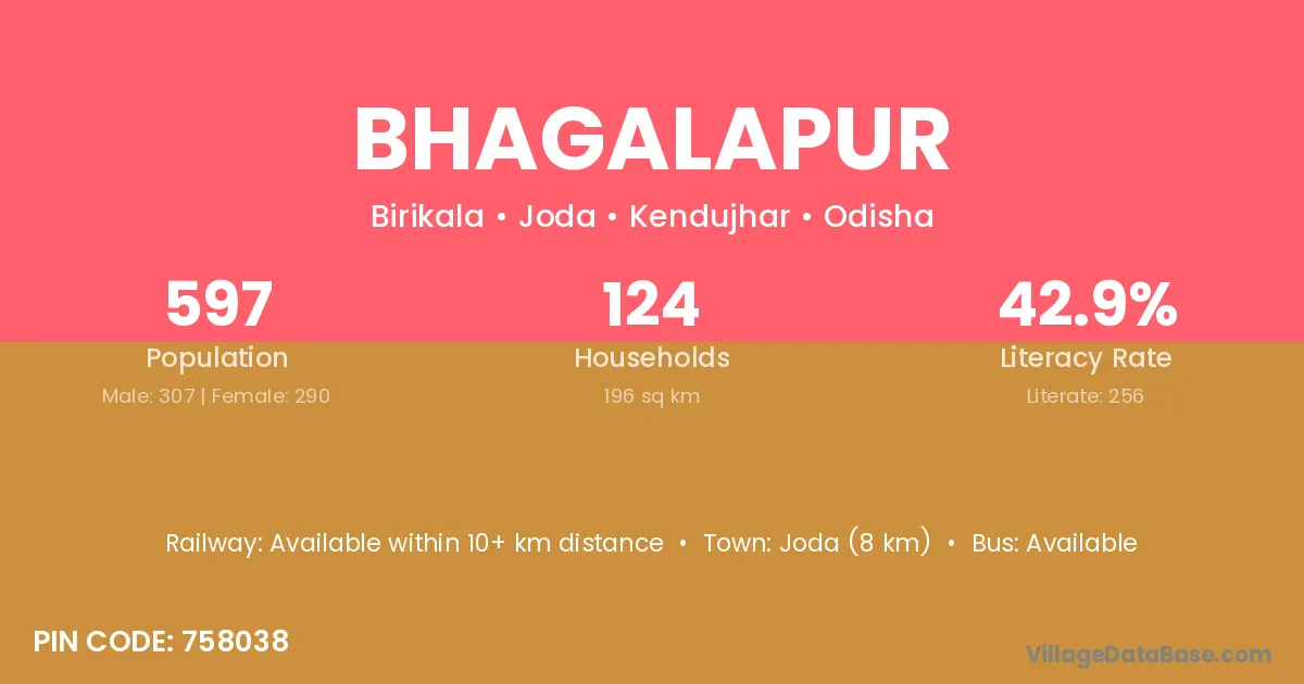 Joda (8 km) is the nearest town to Bhagalapur village for major economic activities and is located approximately 8 km away.
