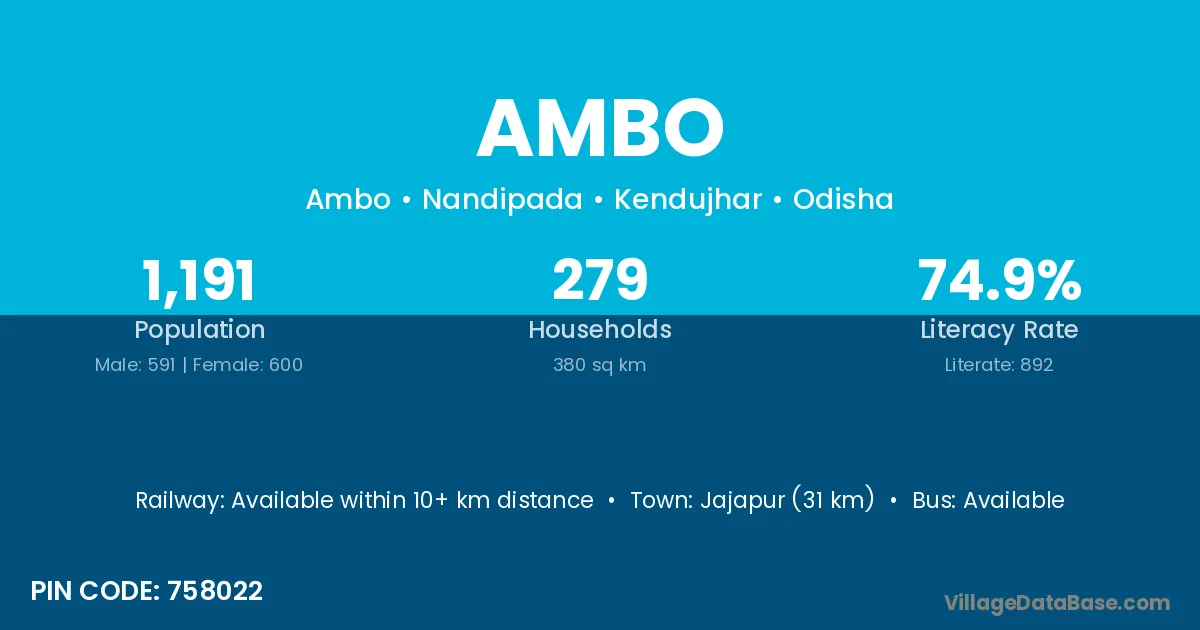 Jajapur (31 km) is the nearest town to Ambo village for major economic activities and is located approximately 31 km away.