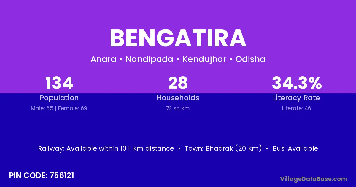 Bengatira village has a total population of 134 people, of which 65 are males and 69 are females.