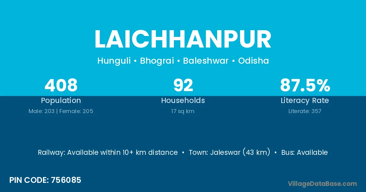 According to Census 2011 information, the village code of Laichhanpur village is 758022.