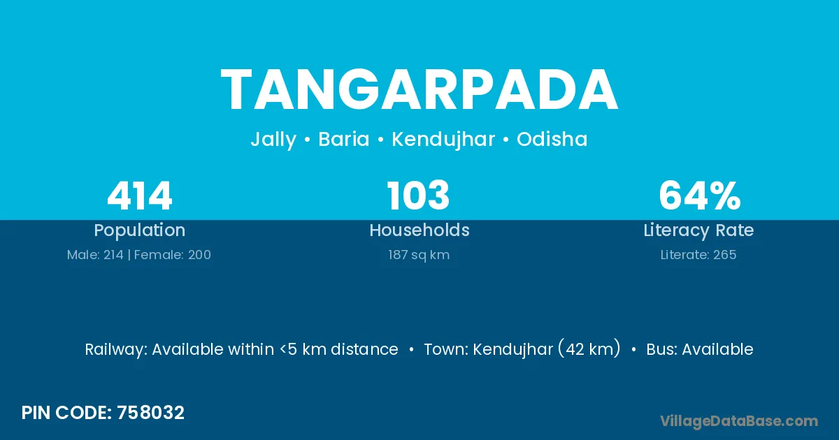 Karanjia (16 km) is the nearest town to Tangarpada village for major economic activities and is located approximately 16 km away.