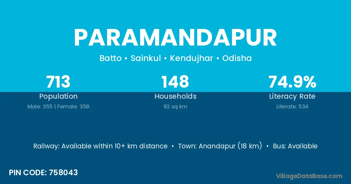 Anandapur (18 km) is the nearest town to Paramandapur village for major economic activities and is located approximately 18 km away.