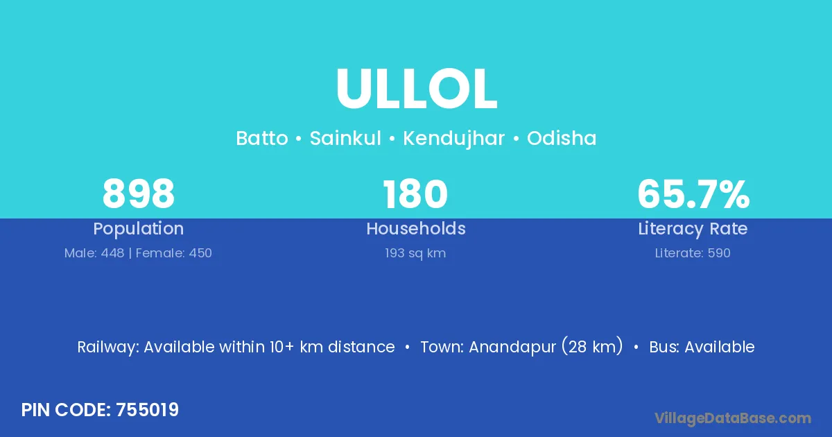 Anandapur (28 km) is the nearest town to Ullol village for major economic activities and is located approximately 28 km away.
