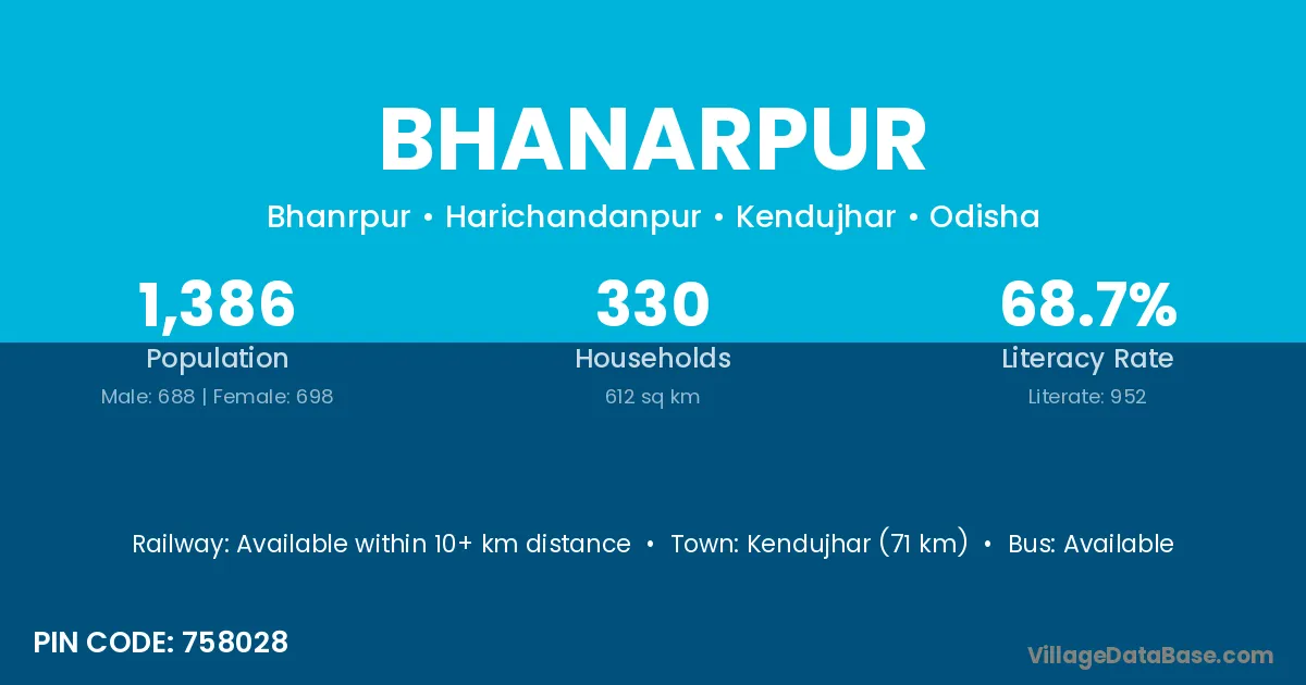 Anandapur (30 km) is the nearest town to Bhanarpur village for major economic activities and is located approximately 30 km away.