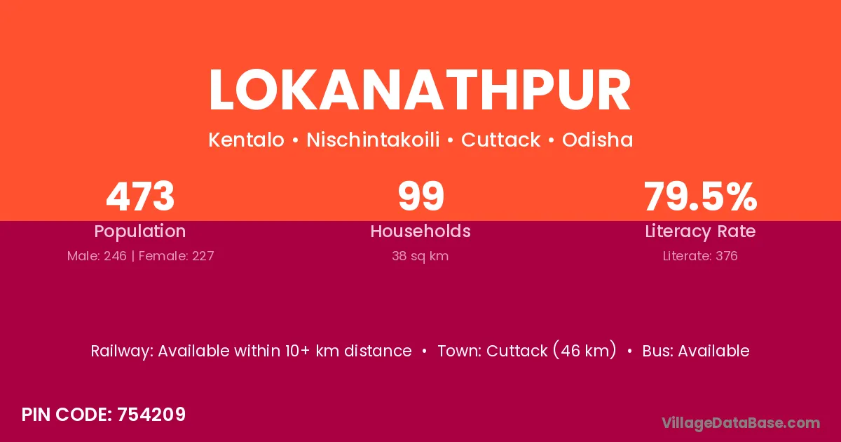 Kendujhar (70 km) is the nearest town to Lokanathpur village for major economic activities and is located approximately 70 km away.