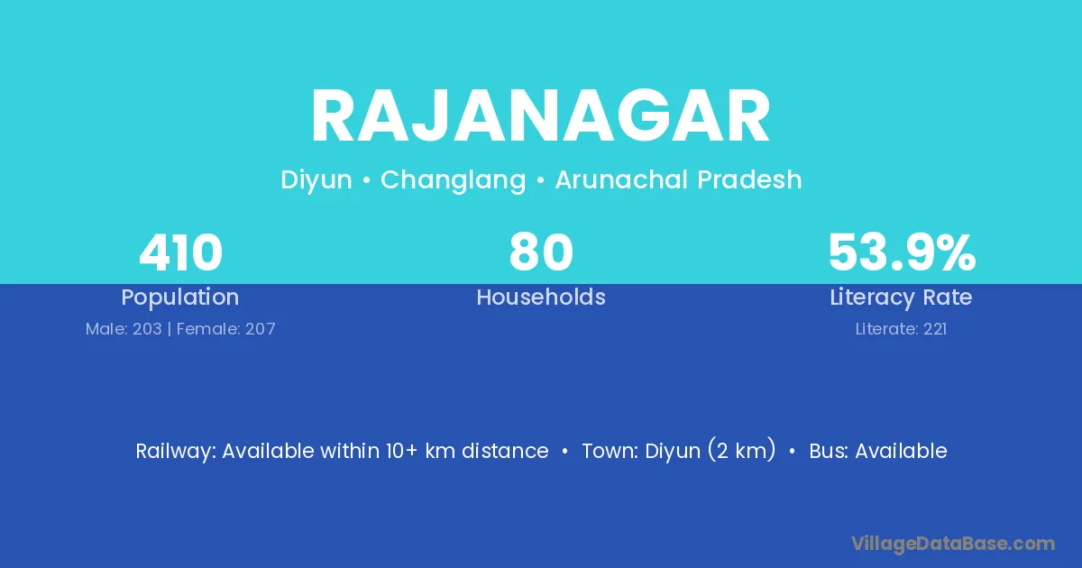 The literacy rate of Rajanagar village is 69.35%. Male literacy stands at 78.08% and female literacy at 61.07%.