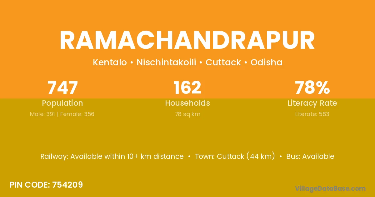 Karanjia (19 km) is the nearest town to Ramachandrapur village for major economic activities and is located approximately 19 km away.