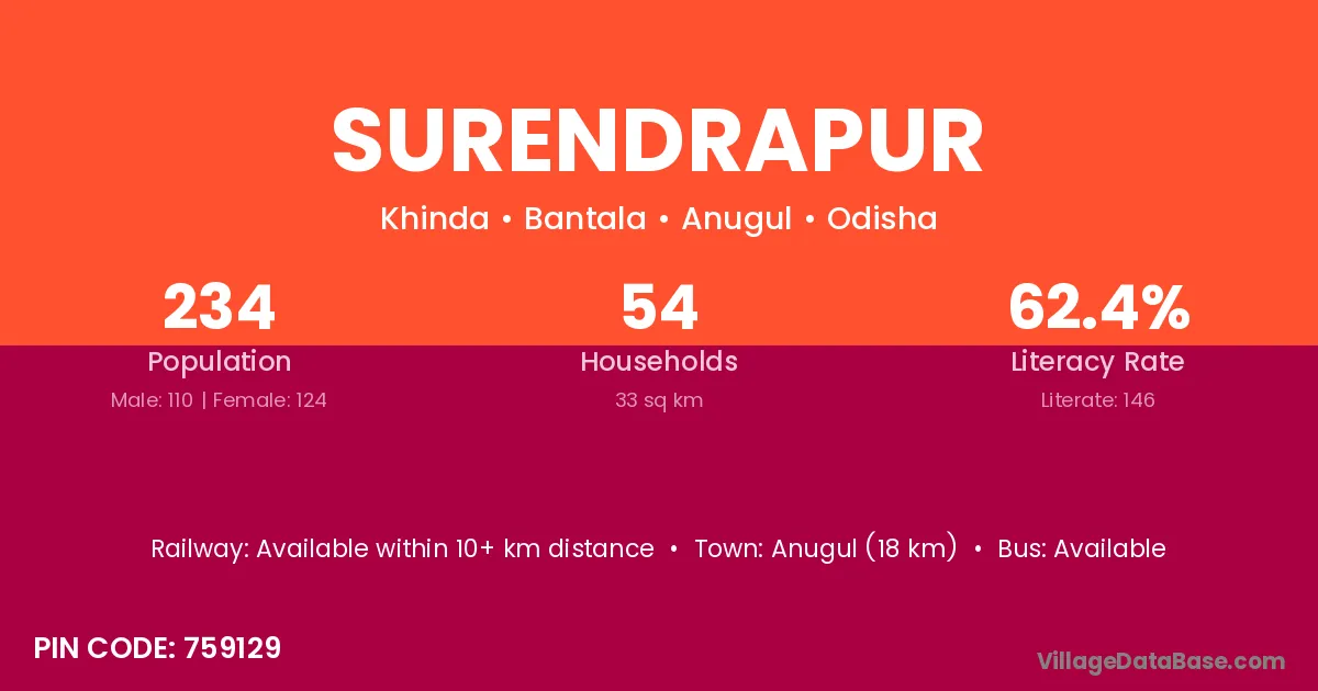 Surendrapur village has a total population of 215 people, of which 103 are males and 112 are females.