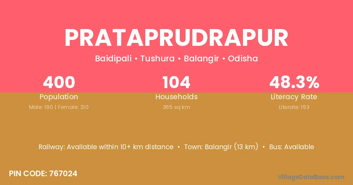 Bhubaneswar (23 km) is the nearest town to Prataprudrapur village for major economic activities and is located approximately 23 km away.