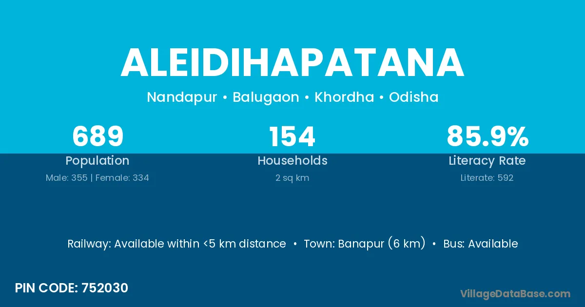 Banapur (6 km) is the nearest town to Aleidihapatana village for major economic activities and is located approximately 6 km away.
