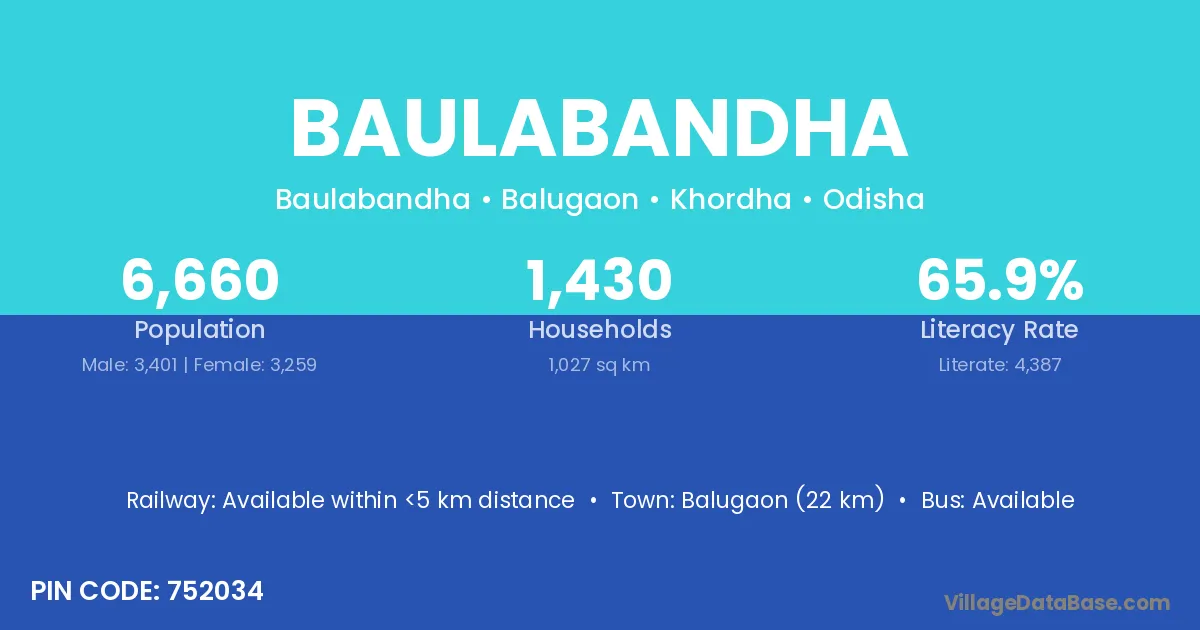 Balugaon (22 km) is the nearest town to Baulabandha village for major economic activities and is located approximately 22 km away.