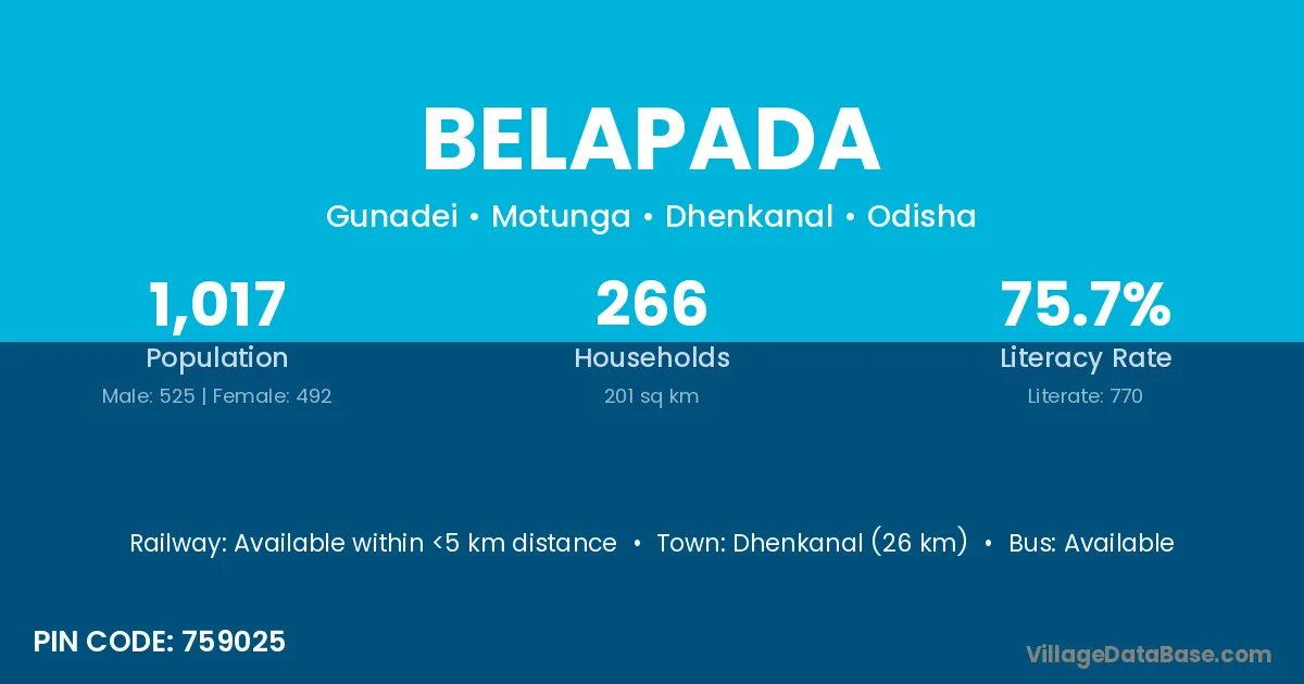 Banapur (15 km) is the nearest town to Belapada village for major economic activities and is located approximately 15 km away.