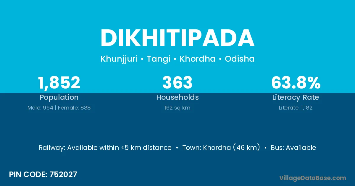 Banapur (8 km) is the nearest town to Dikhitipada village for major economic activities and is located approximately 8 km away.