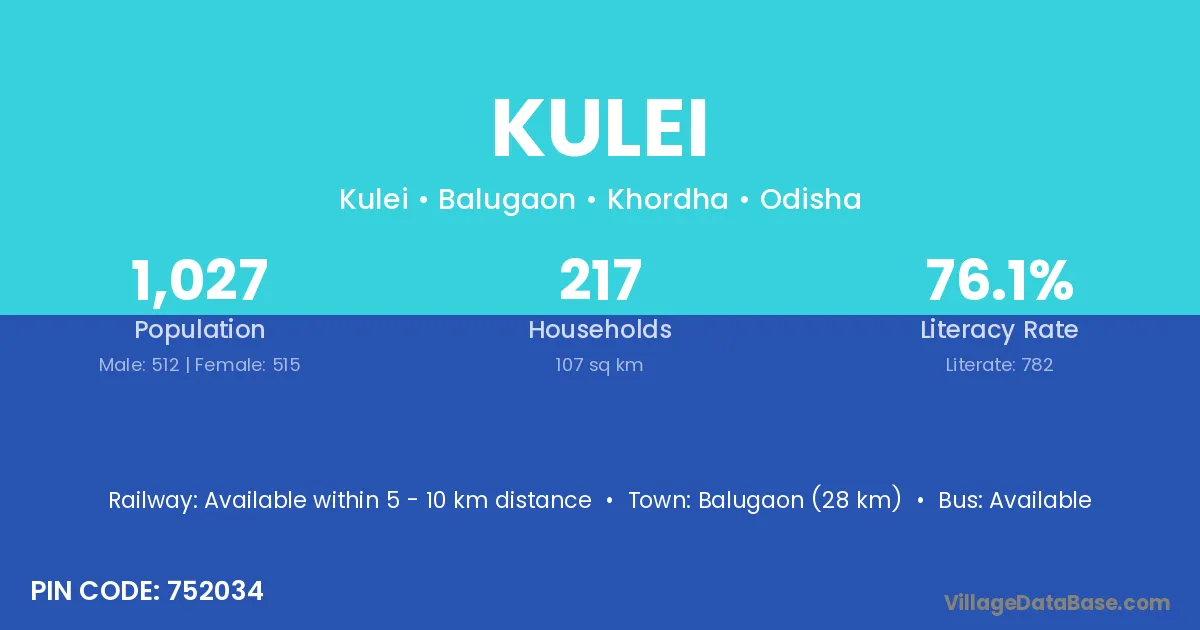 Kulei village is located in the Balugaon Tehsil of the Khordha district in Odisha .
