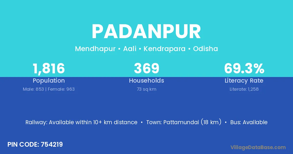 Balugaon (2 km) is the nearest town to Padanpur village for major economic activities and is located approximately 2 km away.