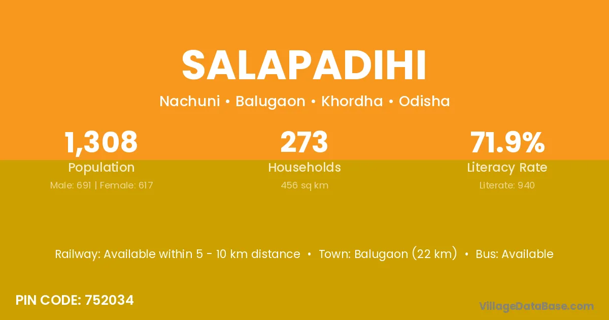 Balugaon (22 km) is the nearest town to Salapadihi village for major economic activities and is located approximately 22 km away.