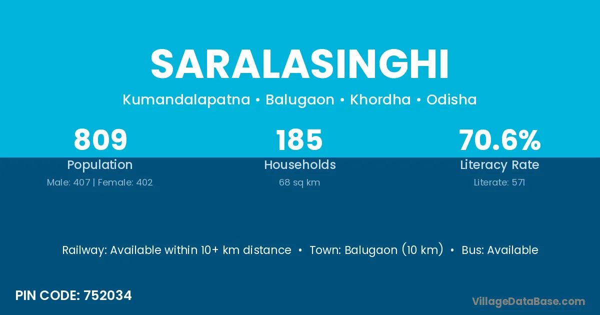 Saralasinghi village has a total population of 809 people, of which 407 are males and 402 are females.