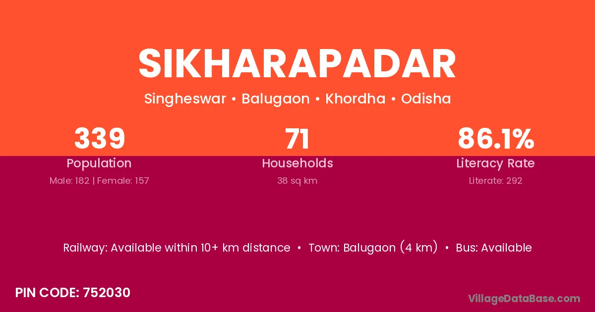 Sikharapadar village has a total population of 339 people, of which 182 are males and 157 are females.