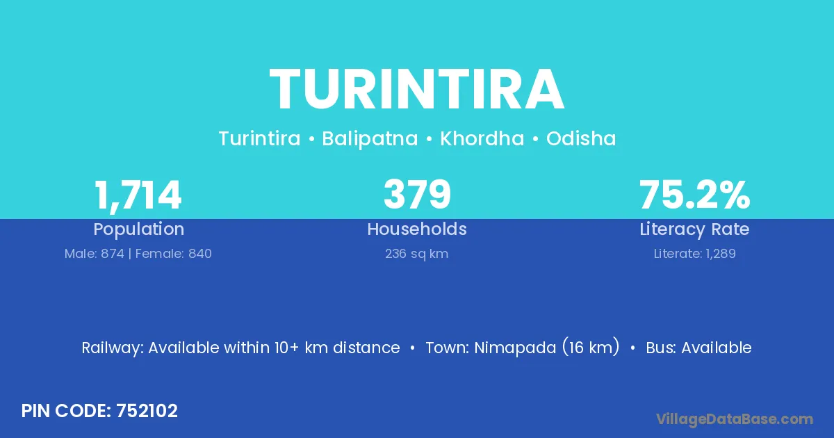 Turintira village is located in the Balugaon Tehsil of the Khordha district in Odisha .