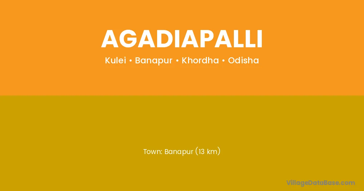 Agadiapalli village is located in the Banapur Tehsil of the Khordha district in Odisha .