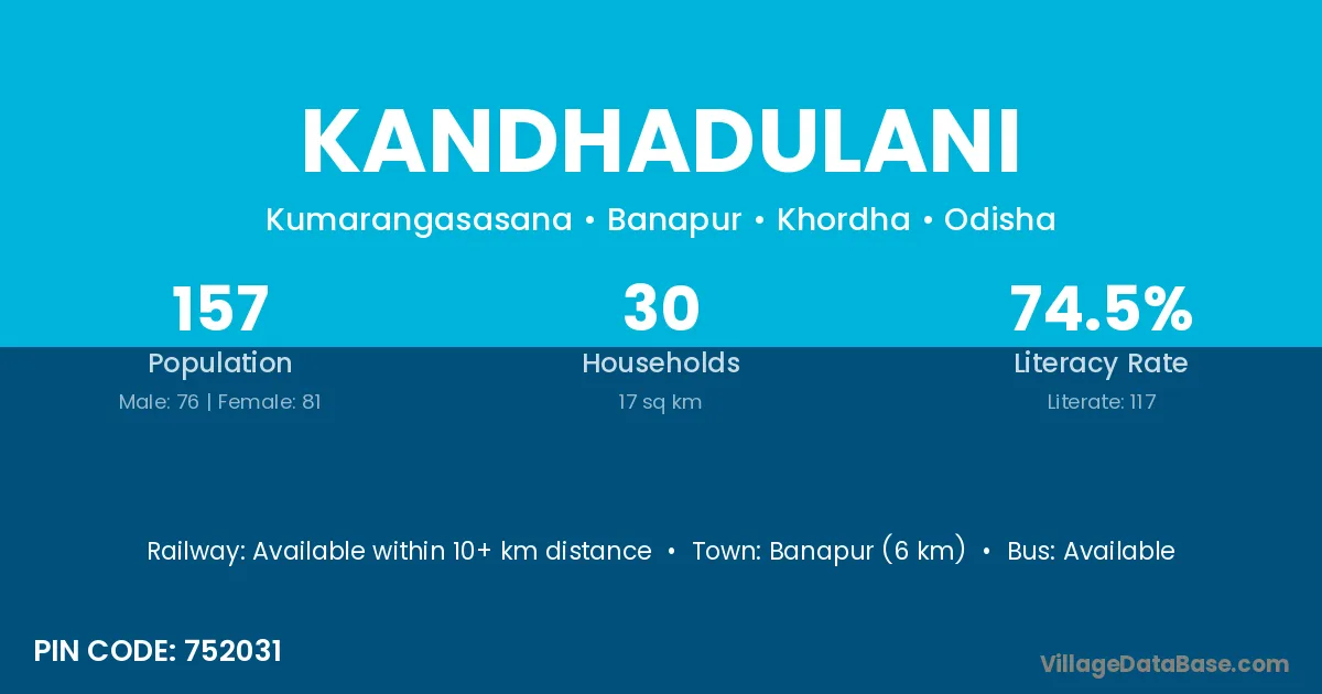Kandhadulani village has a total population of 157 people, of which 76 are males and 81 are females.