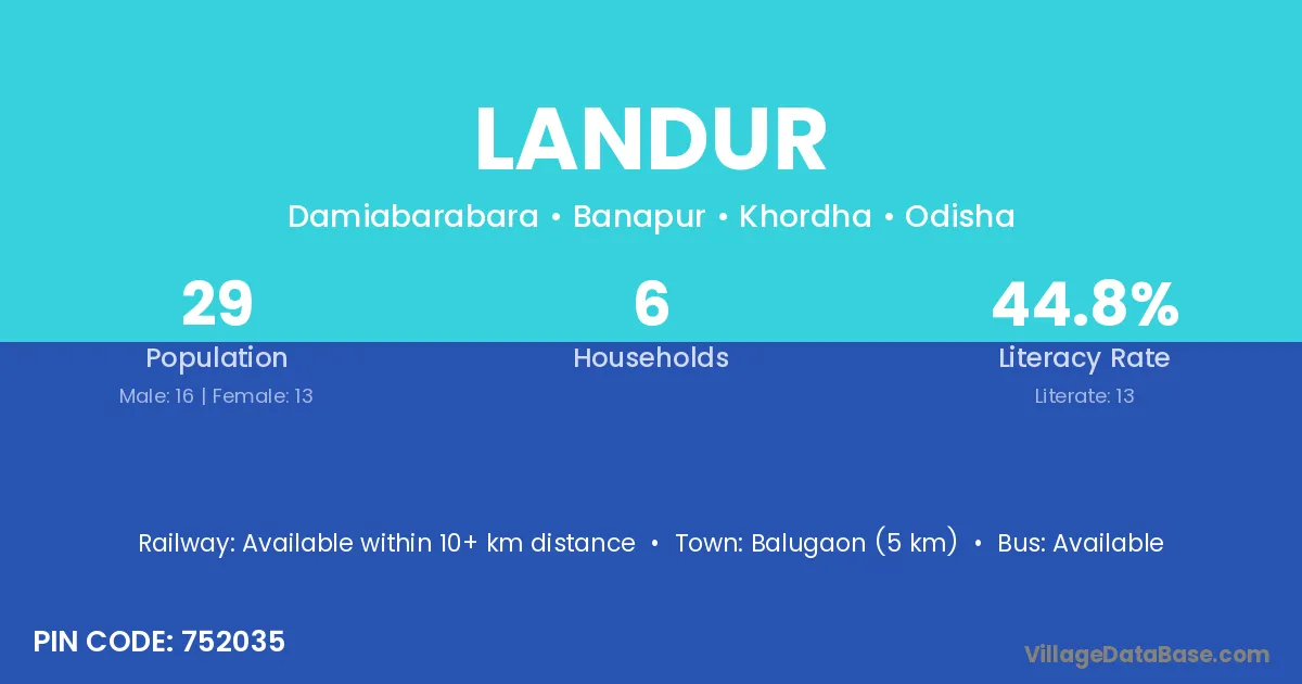 Balugaon (5 km) is the nearest town to Landur village for major economic activities and is located approximately 5 km away.