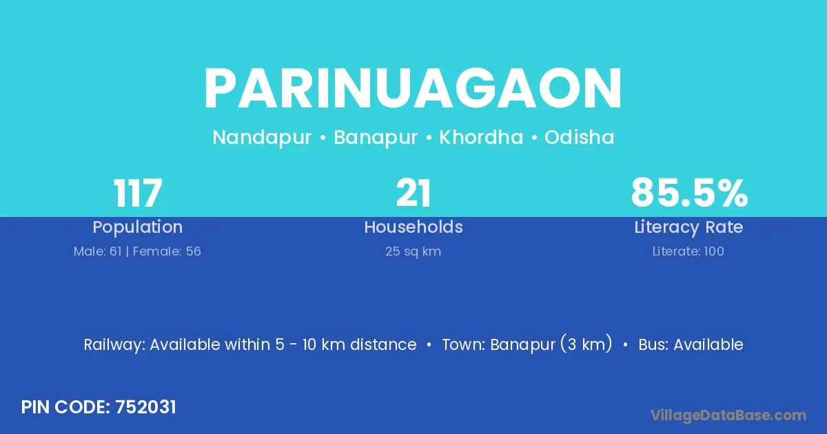 Banapur (3 km) is the nearest town to Parinuagaon village for major economic activities and is located approximately 3 km away.