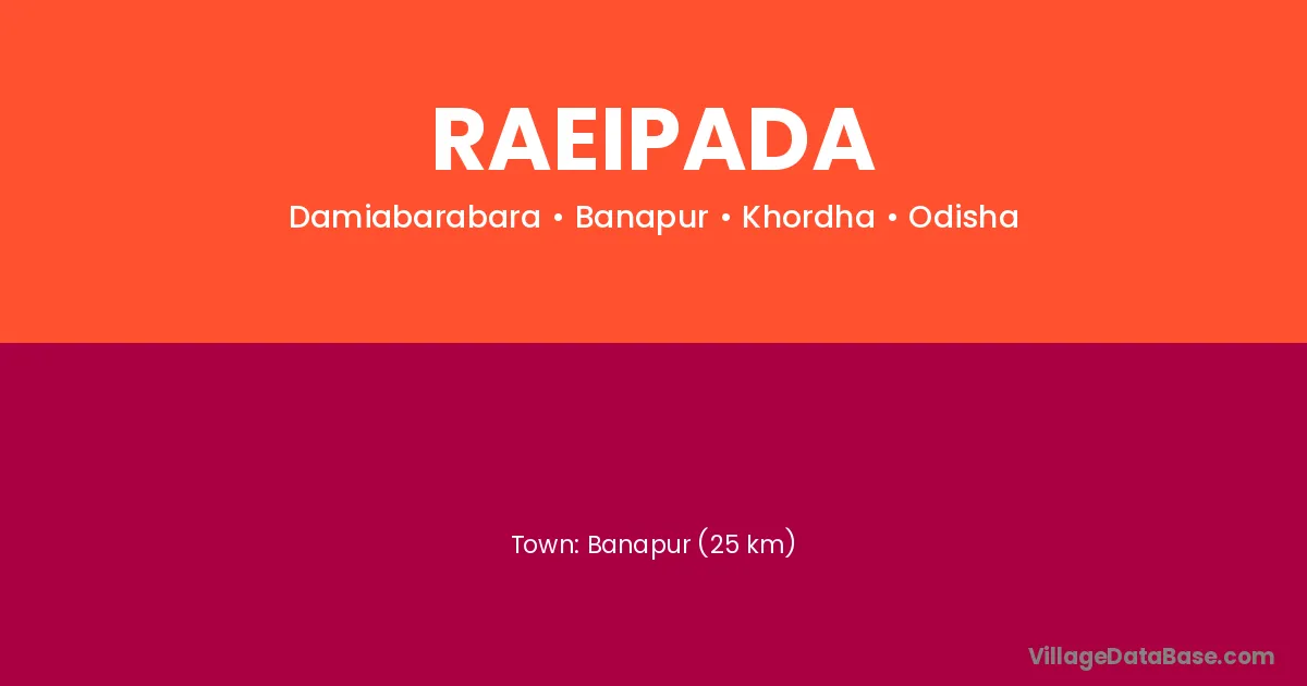 Raeipada village is located in the Banapur Tehsil of the Khordha district in Odisha .