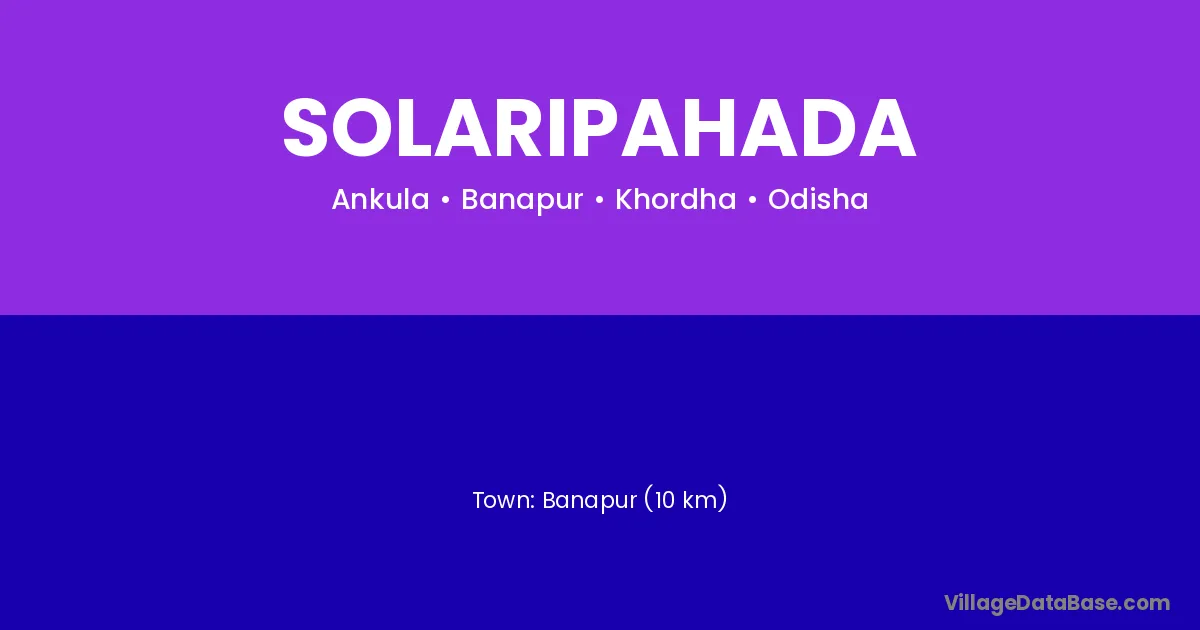 Solaripahada village is located in the Banapur Tehsil of the Khordha district in Odisha .