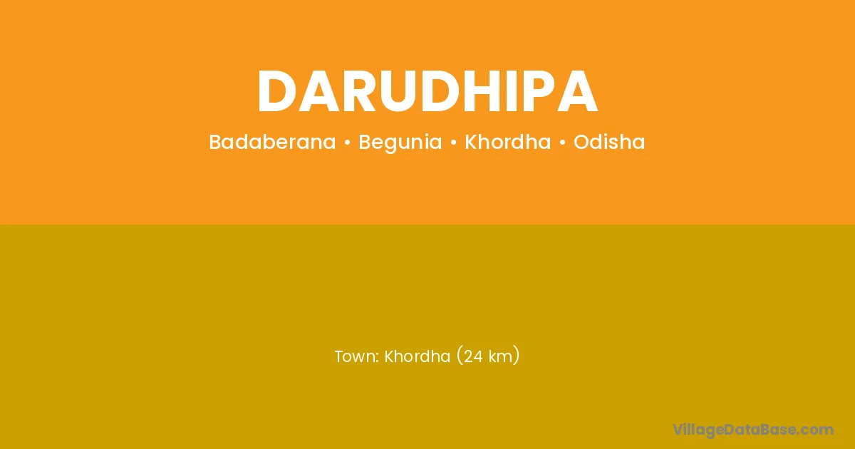 Darudhipa village is located in the Begunia Tehsil of the Khordha district in Odisha .