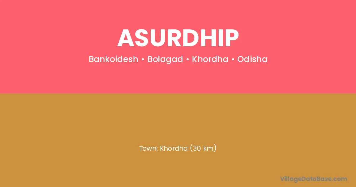 Asurdhip village is located in the Bolagad Tehsil of the Khordha district in Odisha .