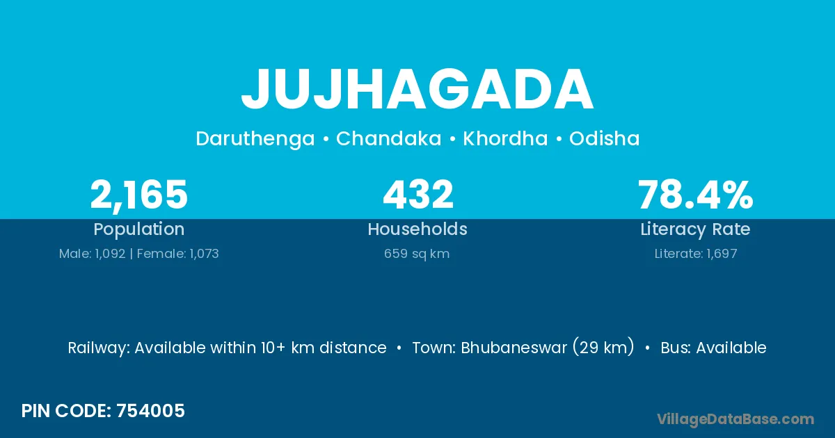 Jujhagada village has a total population of 2,165 people, of which 1,092 are males and 1,073 are females.