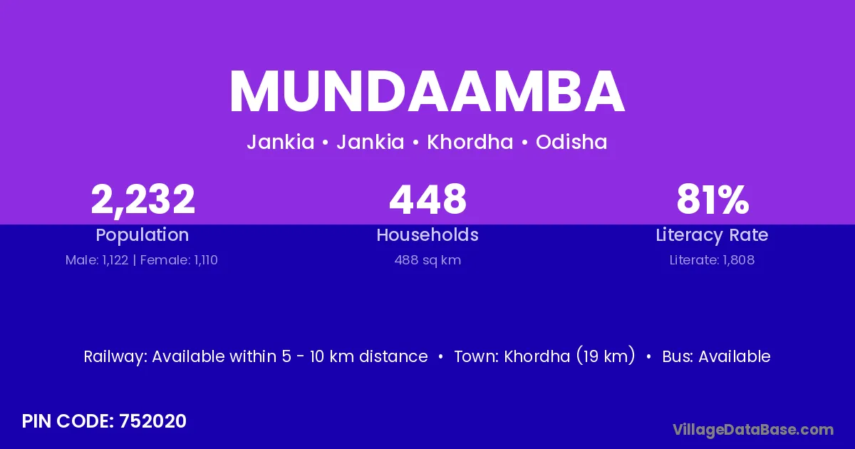 Mundaamba village is located in the Jankia Tehsil of the Khordha district in Odisha .
