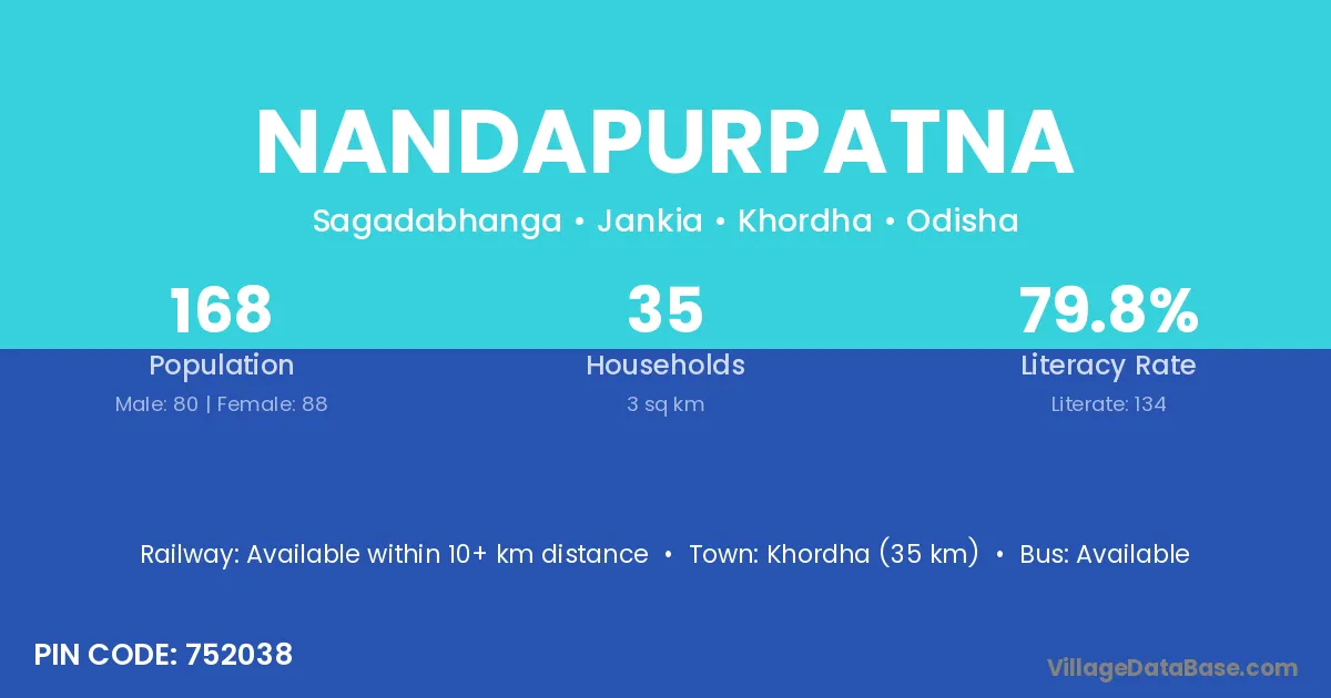 Khordha (35 km) is the nearest town to Nandapurpatna village for major economic activities and is located approximately 35 km away.