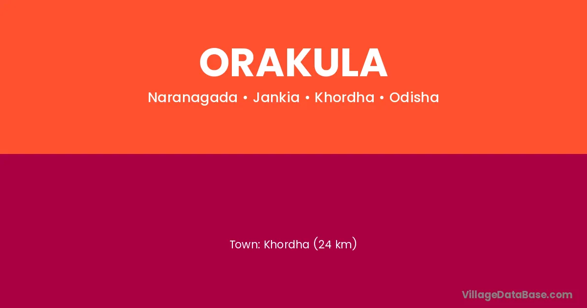 Orakula village is located in the Jankia Tehsil of the Khordha district in Odisha .