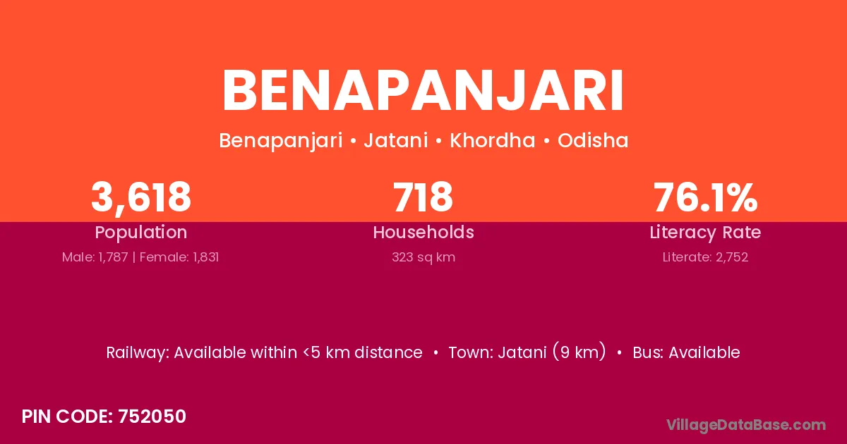 Jatani (9 km) is the nearest town to Benapanjari village for major economic activities and is located approximately 9 km away.