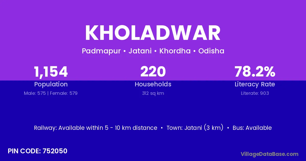 Jatani (3 km) is the nearest town to Kholadwar village for major economic activities and is located approximately 3 km away.