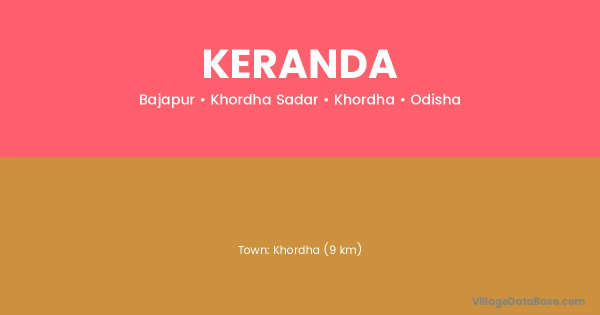 Khordha (9 km) is the nearest town to Keranda village for major economic activities and is located approximately 9 km away.