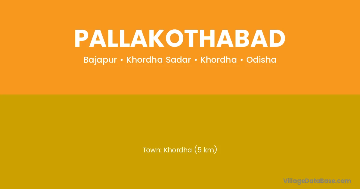 Khordha (5 km) is the nearest town to Pallakothabad village for major economic activities and is located approximately 5 km away.
