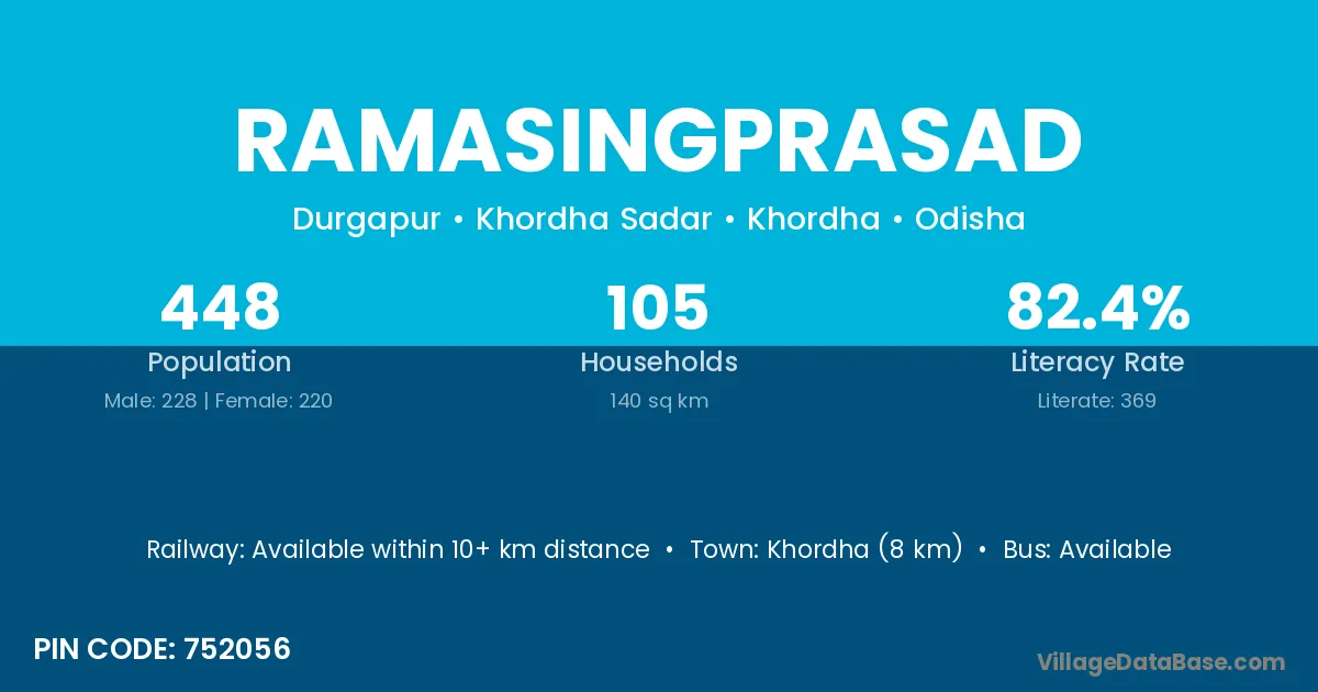 Khordha (8 km) is the nearest town to Ramasingprasad village for major economic activities and is located approximately 8 km away.