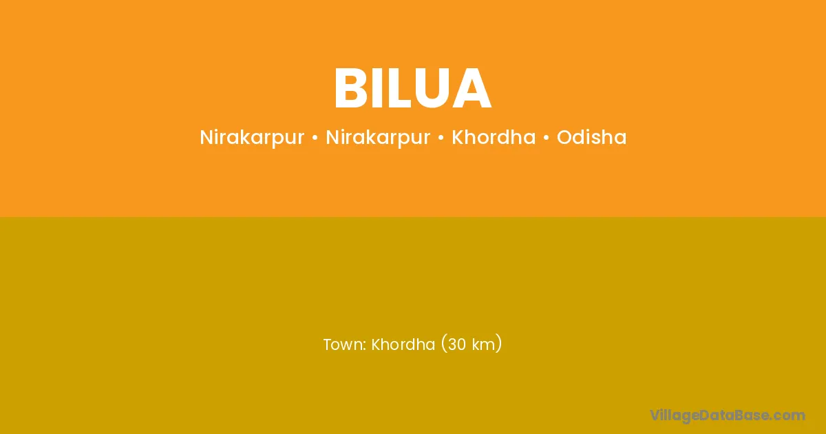 Khordha (30 km) is the nearest town to Bilua village for major economic activities and is located approximately 30 km away.