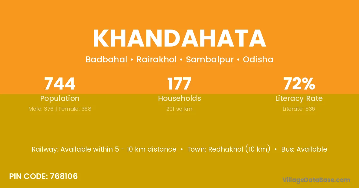 Khordha (26 km) is the nearest town to Khandahata village for major economic activities and is located approximately 26 km away.