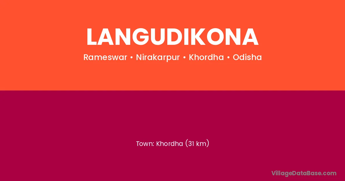 Khordha (31 km) is the nearest town to Langudikona village for major economic activities and is located approximately 31 km away.
