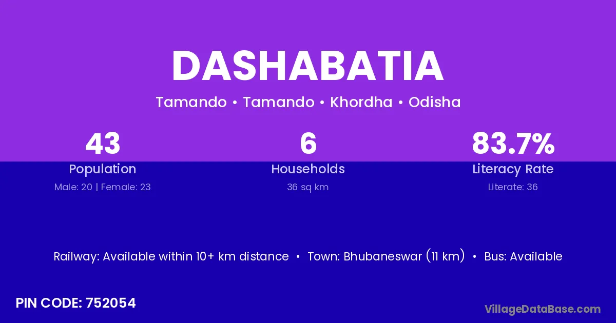 Bhubaneswar (11 km) is the nearest town to Dashabatia village for major economic activities and is located approximately 11 km away.
