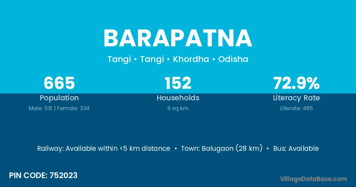 Balugaon (28 km) is the nearest town to Barapatna village for major economic activities and is located approximately 28 km away.